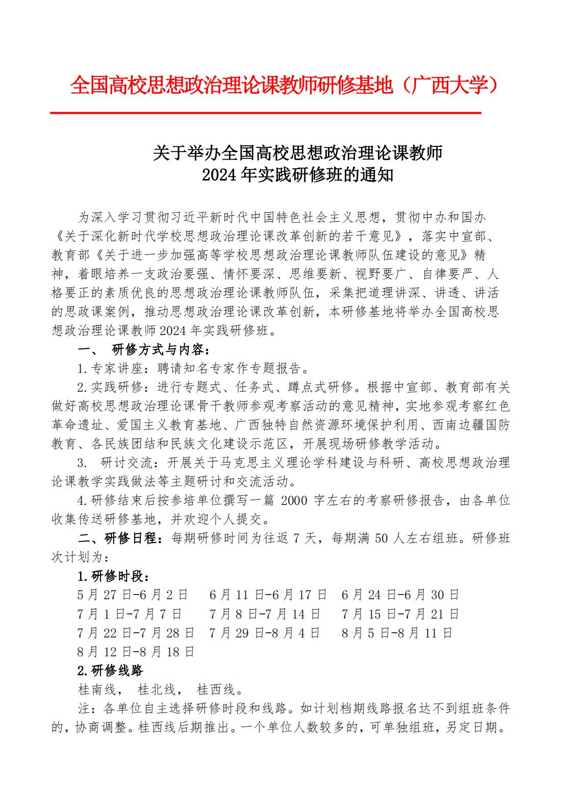 2024年全国高校思想政治理论课教师研修基地(2138CC太阳集团)实践研修班通知.pdf