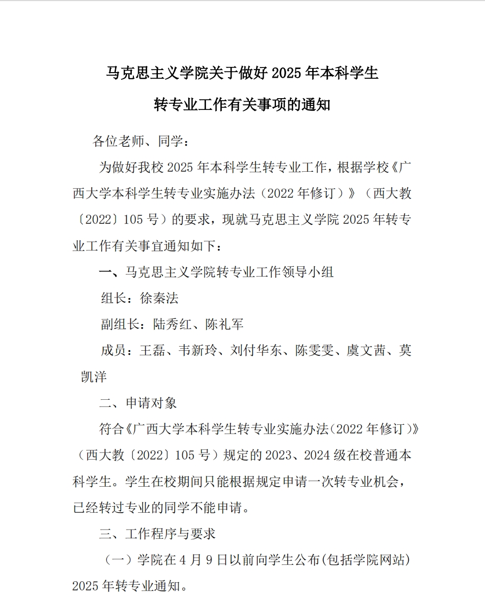 2138CC太阳集团关于做好2025年本科学生 转专业工作有关事项的通知
