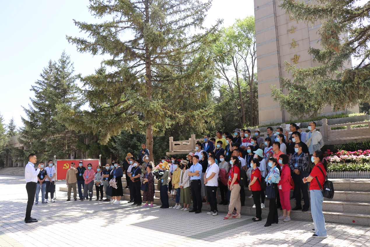 7月8日上午,培训班前往“中国原子城”——海北藏族自治州海晏县进行现场教学。首先,学员们参观了中国第一个核武器研制基地一分厂,重温先辈为祖国的核事业做出的贡献,传承两弹一星精神。随后,学员们在中国第一个核武器研制基地纪念碑前以民族地区最崇高的礼仪向先辈们致敬。