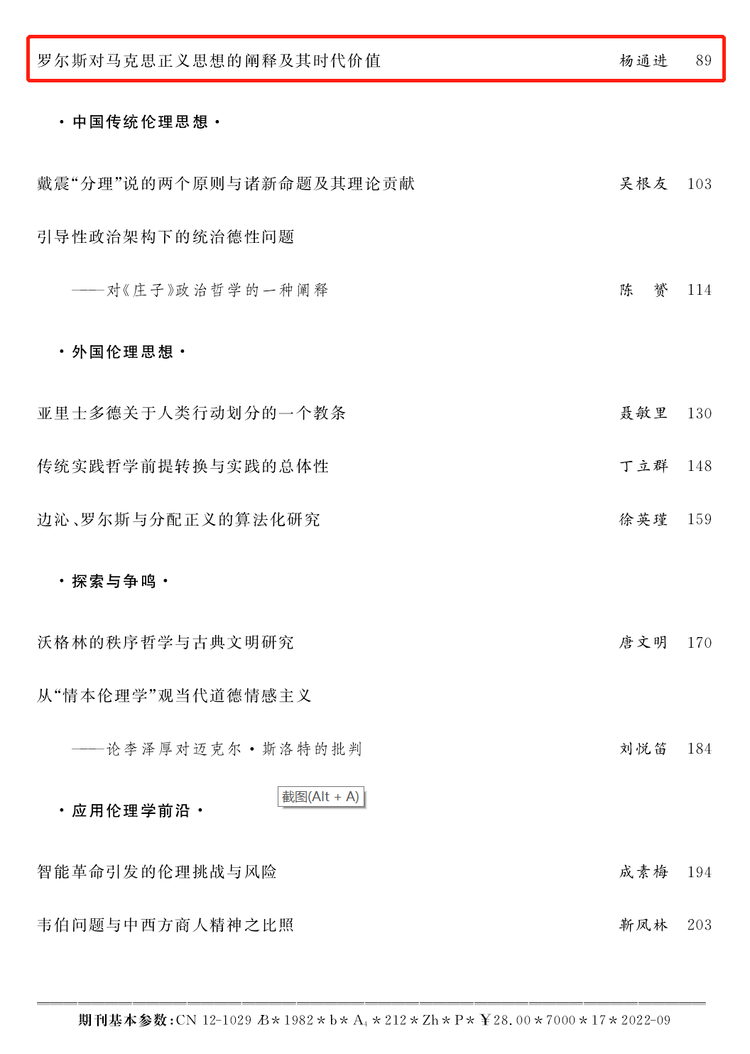 2138CC太阳集团杨通进教授在《道德与文明》(2022年第5期)上发表理论文章《罗尔斯对马克思正义思想的阐释及其时代价值》。《道德与文明》是中国伦理学会与天津社会科学院共同主办的伦理学专业理论期刊,创刊于1982年,是国内最早的伦理学专业期刊。期刊致力于追踪伦理学学术前沿信息,重视基础理论研究,以及应用伦理学研究的发展趋势和最新成果,力求全面反映中国特色社会主义建设过程中的伦理道德和精神文明建设等重大社会现实课题。