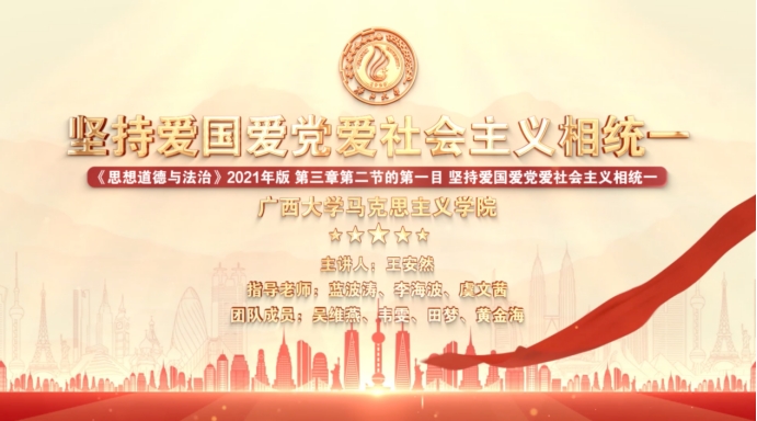 参赛团队以《坚持爱国爱党爱社会主义相统一》为主题展开课程设计,从“没有共产党就没有新中国”“没有社会主义哪有今日中国”“没有国哪有家”入手,详细梳理了爱国、爱党、爱社会主义三者相统一的历史必然、内在逻辑与时代要求,引导学生深刻认识爱国主义的本质就是坚持爱国、爱党、爱社会主义的高度统一,自觉将追逐个人梦想融入实现伟大中国梦的生动实践中。在课堂教学过程中,团队选取百年前的中国青年和新时代的典型人物作为案例穿插到教学当中,运用思维导图帮助学生梳理课堂内容、巩固课程知识点,让学生在轻松和谐的课堂氛围中正确理解并自觉坚持爱国、爱党和爱社会主义的统一,引导学生把爱国情、强国志、报国行自觉融入到坚持和发展中国特色社会主义、建设社会主义现代化强国中。