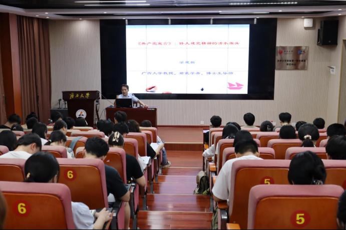 课上,梁建新老师对《共产党宣言》的重要理论地位、科学思想内涵、现实指导意义三个方面作了详细解读与深刻阐释。他表示,《共产党宣言》是伟大建党精神的活水源头,而伟大建党精神又是中国共产党人精神谱系的高度凝练。他指出,“坚持真理、坚守理想,践行初心、担当使命,不怕牺牲、英勇斗争,对党忠诚、不负人民”的伟大建党精神哺育着一代又一代共产党人,激励广大党员为实现共产主义的远大理想而团结奋斗、赓续前行。他强调,同学们应不断增进对党的创新理论的政治认同、思想认同、理论认同、情感认同,准确把握伟大建党精神的深刻内涵和实践要求,自觉用伟大建党精神滋养党性修养,做理想坚定、勇于实践、不懈奋斗的新时代好青年。