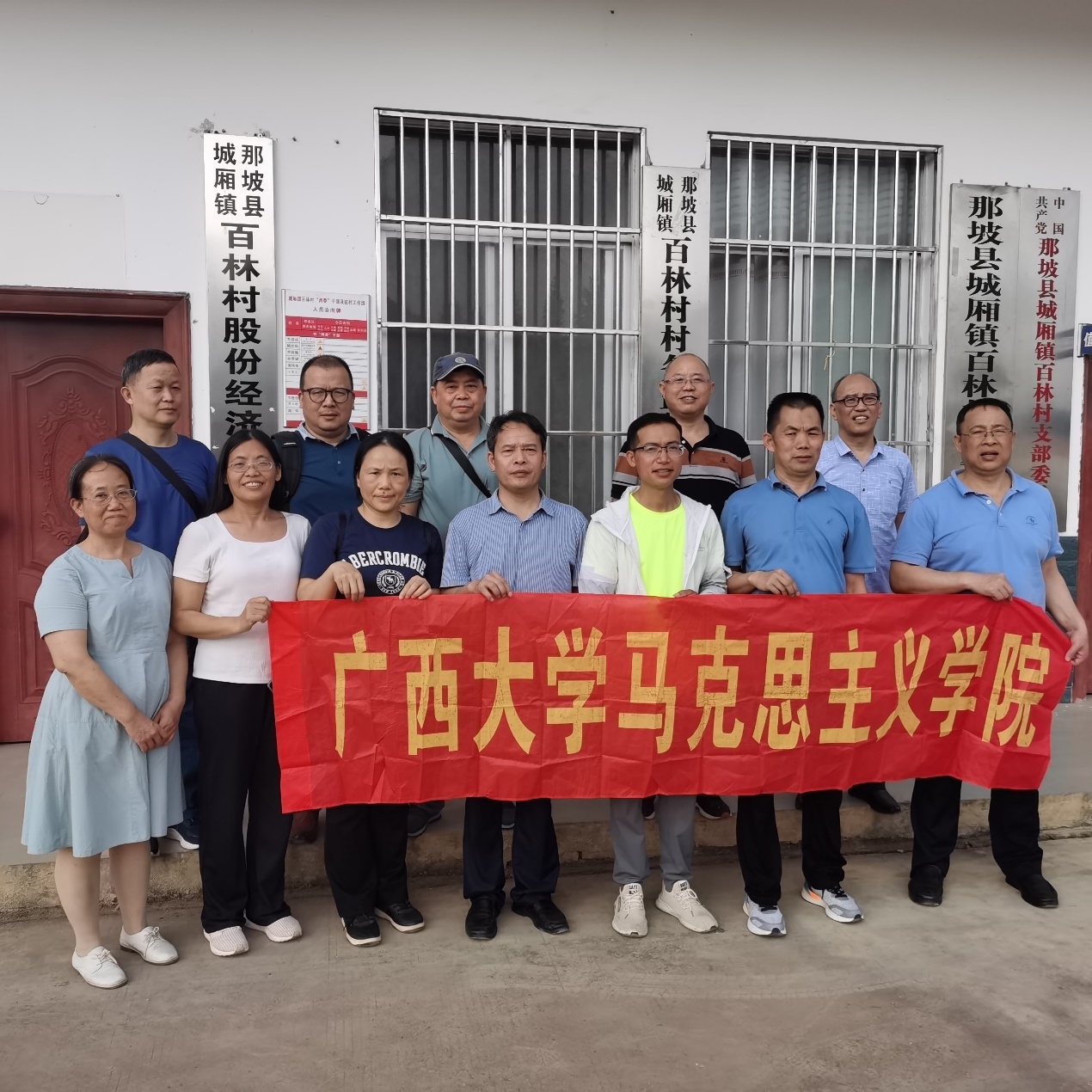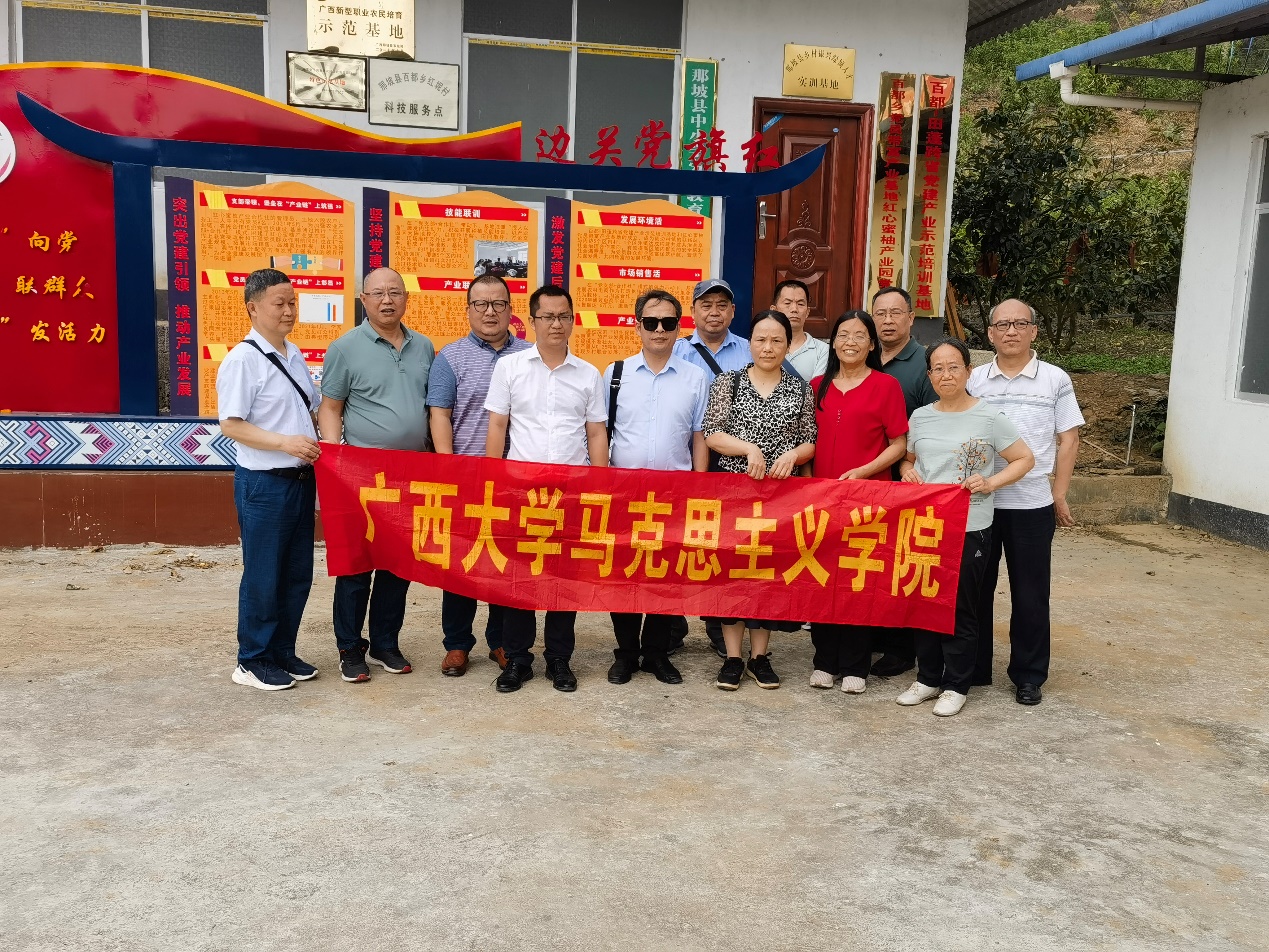 为了扎实推进区级一流课程《毛泽东思想和中国特色社会主义理论体系概论》建设,2138CC太阳集团,2138cc太阳集团官网概论教研部教师在学院副院长梁建新教授带领下,于2023年5月20日至21日赴广西那坡县城厢镇百林村、百都乡红坭村红心蜜柚产业基地、乡政府党群服务中心等地考察乡村振兴与推进共同富裕、基层党建与乡村治理等工作。