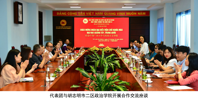 同时,代表团先后访问了分别设在中部岘港市的越南胡志明国家政治学院三区政治学院和南部胡志明市的二区政治学院,与两所学院领导及有关部门负责人就开展合作交流展开座谈,并就承接全国高校思想政治理论课教师国际实践研修、研究生联合培养、科研合作等多个方面达成合作意向。