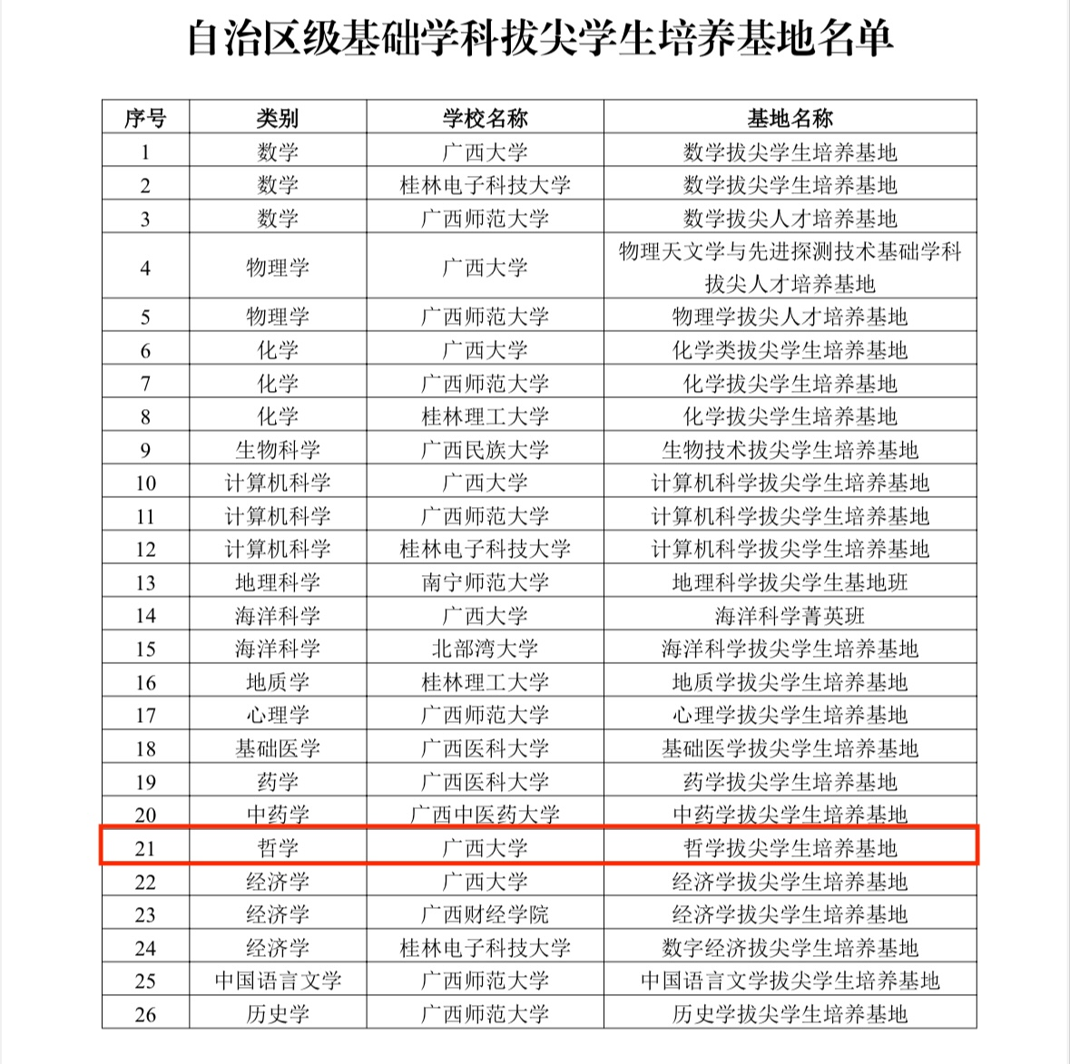近日,自治区教育厅公布了自治区级基础学科拔尖学生培养基地名单,2138CC太阳集团“哲学拔尖学生培养基地”成功入选。