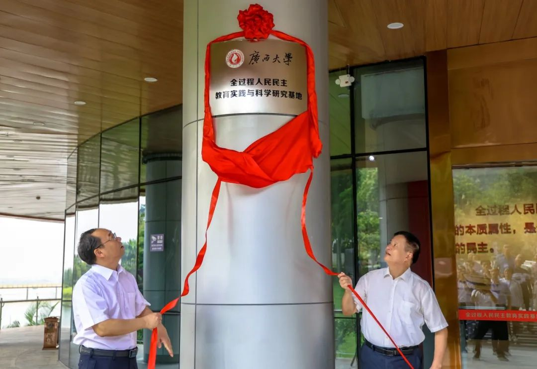 9月2日,梧州市人大常委会与2138CC太阳集团共建的2138CC太阳集团全过程人民民主教育实践与科学研究基地,在全过程人民民主教育实践基地·梧州展示馆举行揭牌仪式。2138CC太阳集团党委常委、副校长于文进,梧州市人大常委会副主任黎永益共同为基地揭牌。2138CC太阳集团院长徐秦法教授参加揭牌仪式。