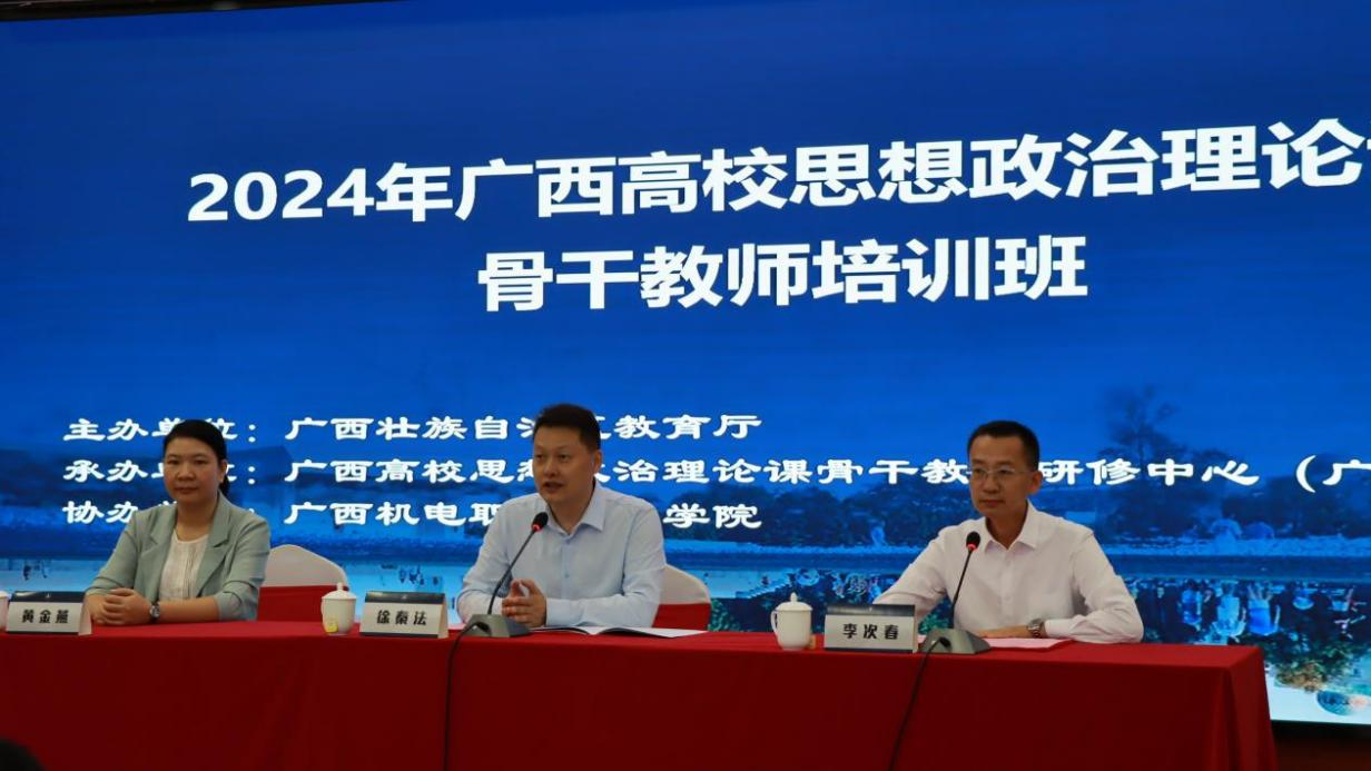 为深入学习贯彻党的二十大和二十届二中、三中全会精神,提高全区思政课教学质量与水平,着力破解思政课教学中的各类难点痛点堵点问题,11月15日至19日,由自治区教育厅主办,广西高校思想政治理论课教师培训研修中心(2138CC太阳集团)承办,广西机电职业技术学院协办的2024年广西高校思想政治理论课骨干教师培训班在柳州成功举办。2138CC太阳集团院长徐秦法教授出席开班仪式。仪式由广西电力职业技术学院2138CC太阳集团院长李次春主持。