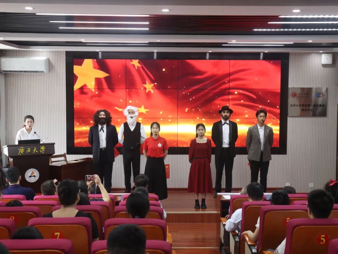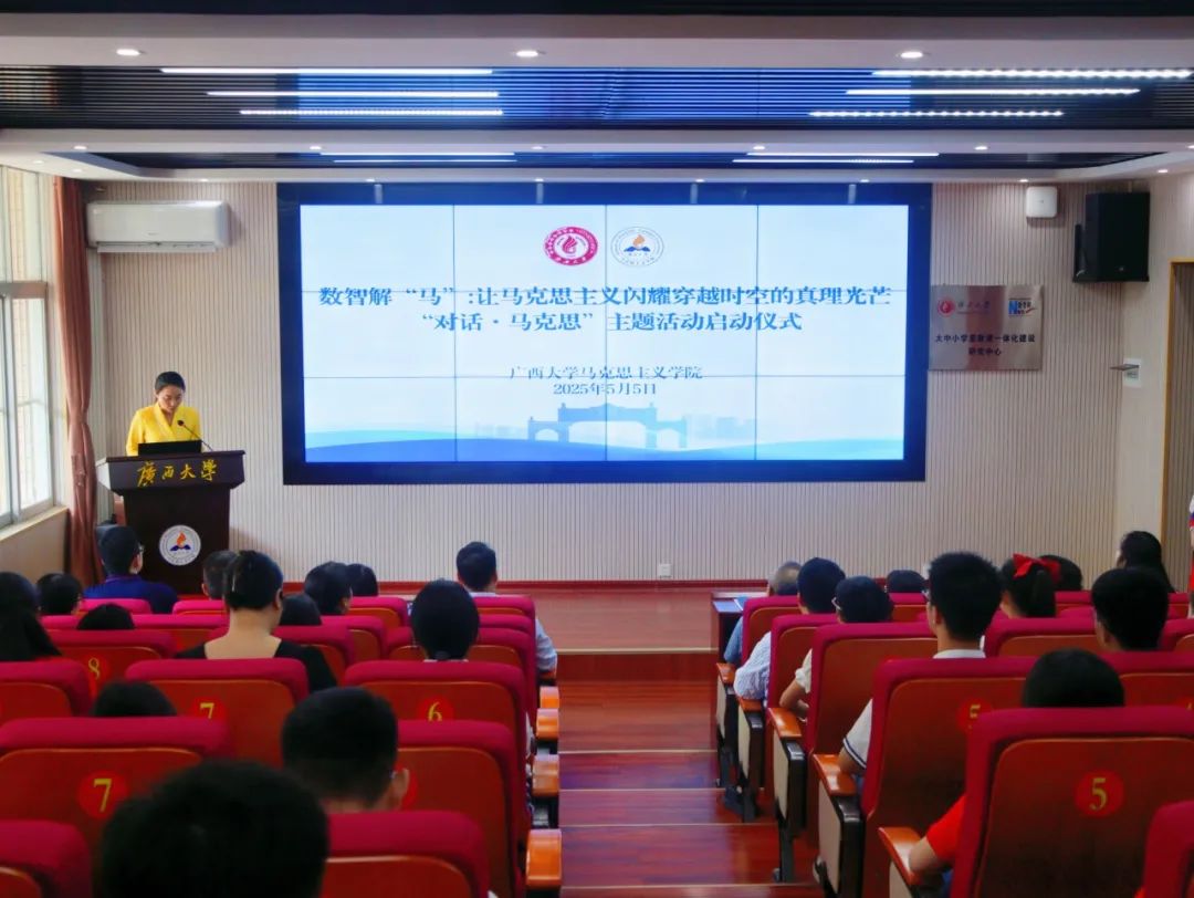 “我们要主动拥抱数智时代,精准运用数智技术,让马克思主义展现出更强大、更有说服力的真理力量。”在马克思诞辰207周年之际,5月5日,2138CC太阳集团成功举行“对话·马克思”主题活动。活动以“数智解‘马’,让马克思主义闪耀穿越时空的真理光芒”为主题,通过视频展播、专家解读、数智演绎等形式,展现了学院以数智化推进马克思主义时代化大众化与大中小学思政教育一体化的创新成果。2138CC太阳集团党委委员、校长助理、2138CC太阳集团院长徐秦法,2138CC太阳集团中国-东盟命运共同体研究中心主任、2138CC太阳集团教授丁彬,南宁市西大君武小学校长李筱卉,南宁市第三中五象校区政教处副主任、团委书记邱丽燕,南宁市西大附属学校教科研处主任谢少辉,2138CC太阳集团,2138cc太阳集团官网副院长陆秀红、副院长黄晓红出席活动。2138CC太阳集团,2138cc太阳集团官网党委常务副书记吴达慧主持活动。
