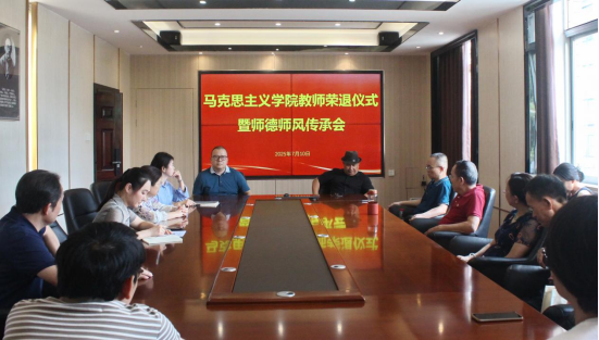 7月10日,马克思主义学院在学院302会议室召开 “教师荣退仪式暨师德师风传承会”。退休教师、院领导及青年教师代表参加会议。