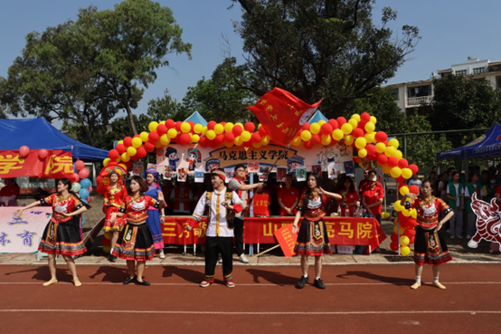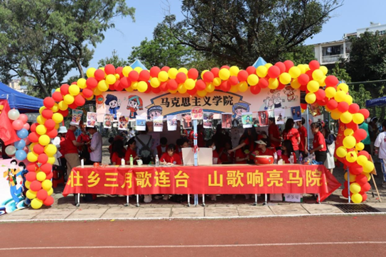 锣鼓威风贯云霄,绣球引逗舞姿俏。伴随着《再唱山歌给党听》的歌声以及百人齐跳民族舞的舞姿中,本次活动拉开序幕。接下来让我们一起欣赏马院学子的风采吧!