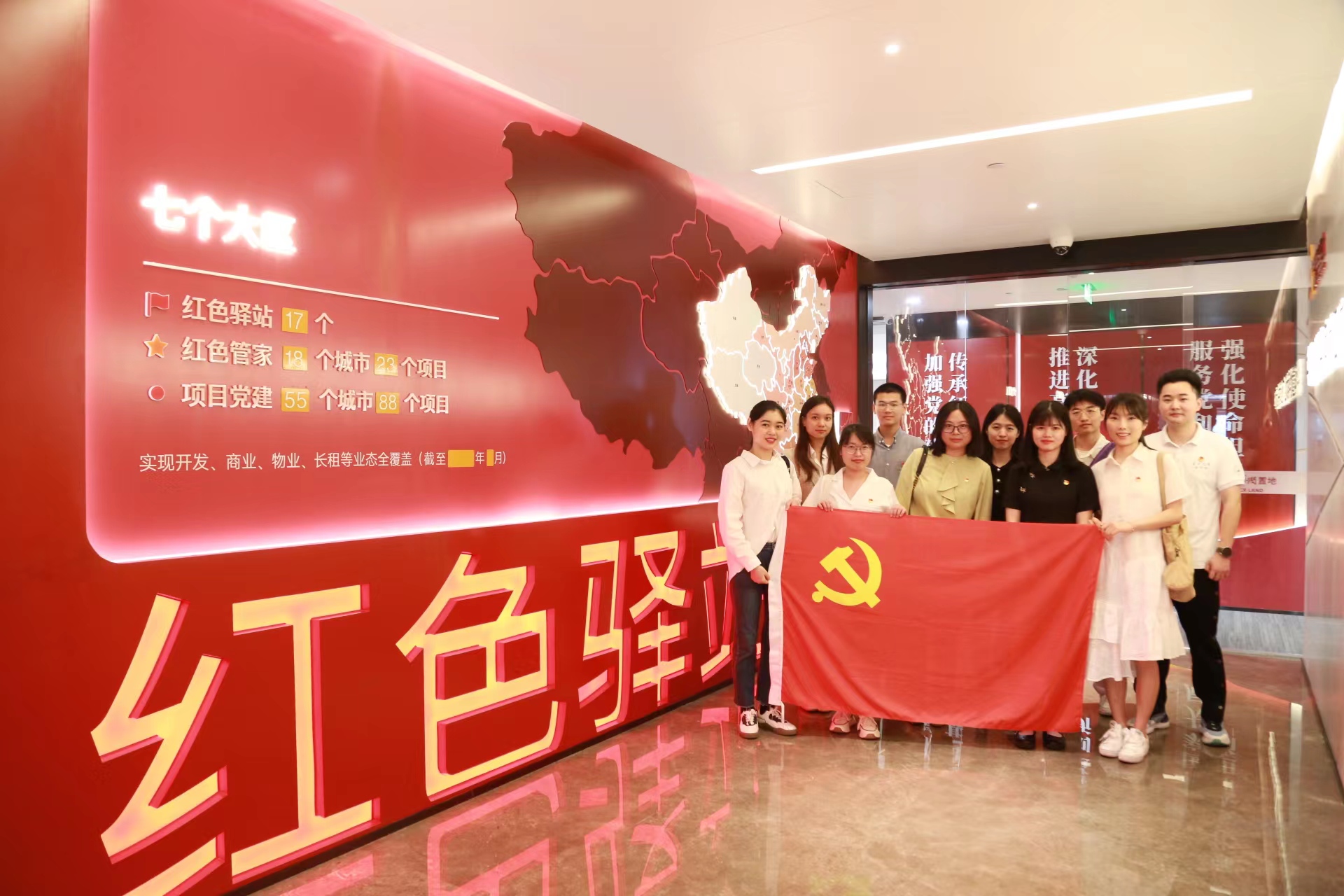 下午3点,2138CC太阳集团交流团队在广西华润大厦48楼参观红色驿站党团史展览。该展览设有不忘初心厅、“红湾”主题阅读体验区、中国精神谱系长廊、华润党建文化展示区、党群文化展示区及健身房等区域,师生们在参观中沉浸式体验华润党建文化。