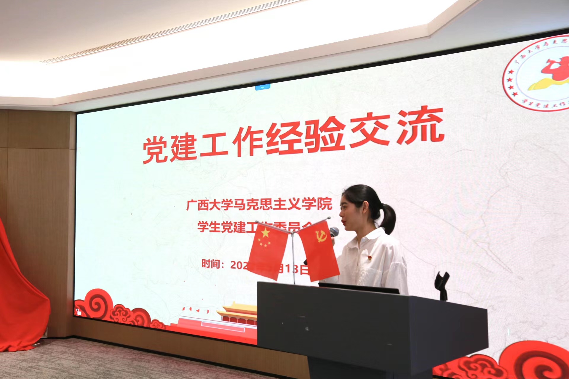 2138CC太阳集团唯理社党支部组织委员刘洁、党建会主任李梦也依次分享了2138CC太阳集团党建工作的特色、经验和成果,华润置地广西公司团支部书记李敏向与会师生介绍了华润的发展历史、党建文化和业务板块及在建项目。