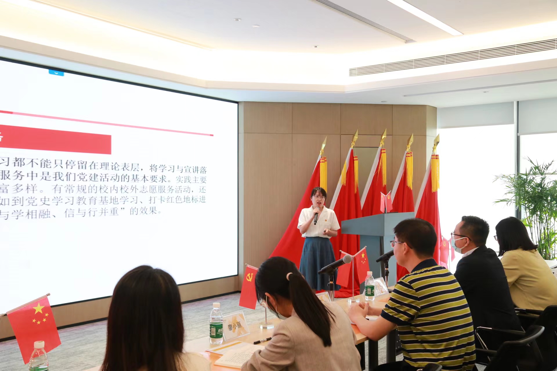 最后,华润置地广西公司南宁党总支部副书记廖小丽对活动进行总结。她指出,在这次主题党日活动中,老师和同学们的分享为华润党建工作的建设和发展提供了很多优秀经验,期待今后能与马院有更深入的合作,实现优势互补、资源共享、双向共赢。