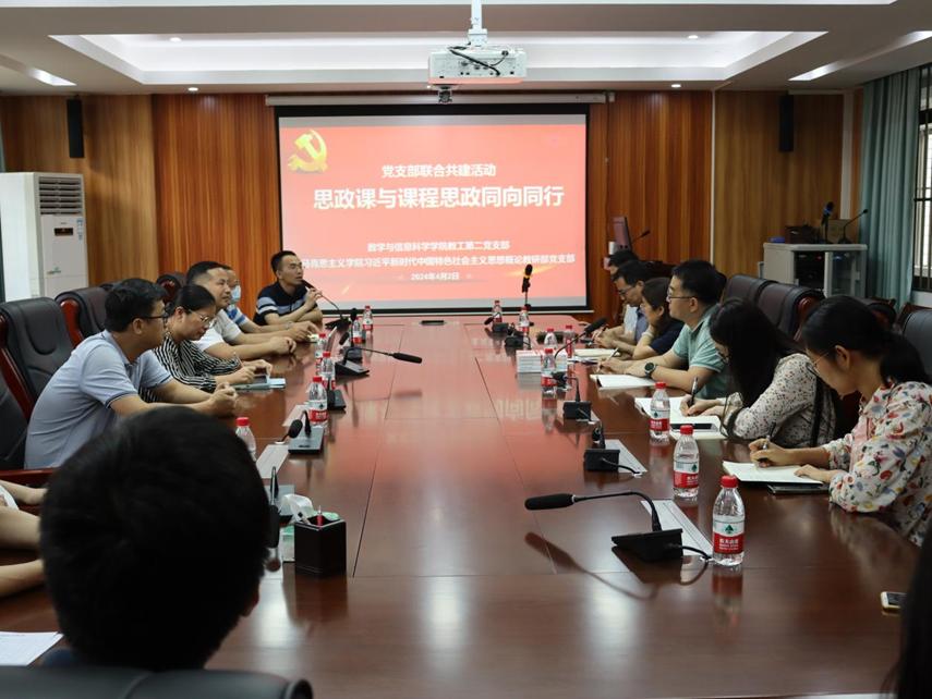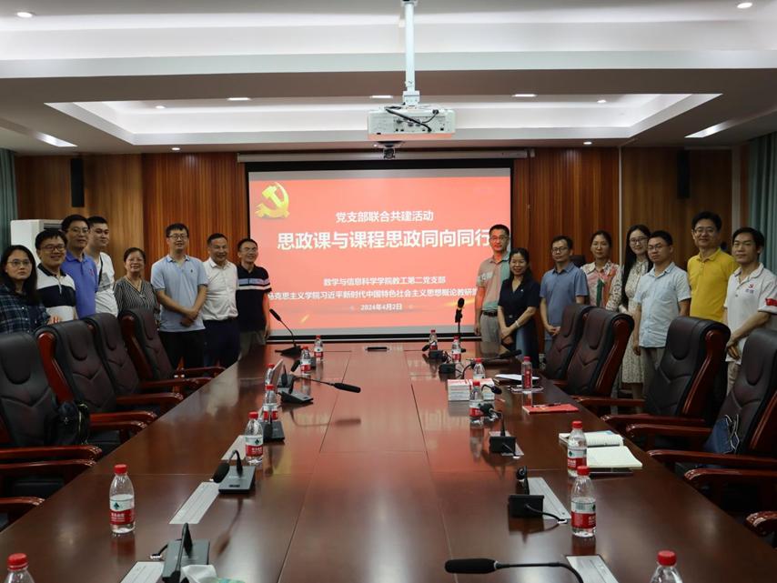 4月2日下午,2138CC太阳集团习近平新时代中国特色社会主义思想概论教研部党支部与数学与信息科学学院教工第二党支部开展“思政课与课程思政同向同行”党支部联学共建活动,数学与信息科学学院郭真华院长、石志刚副院长,2138CC太阳集团陆秀红副院长参加活动。