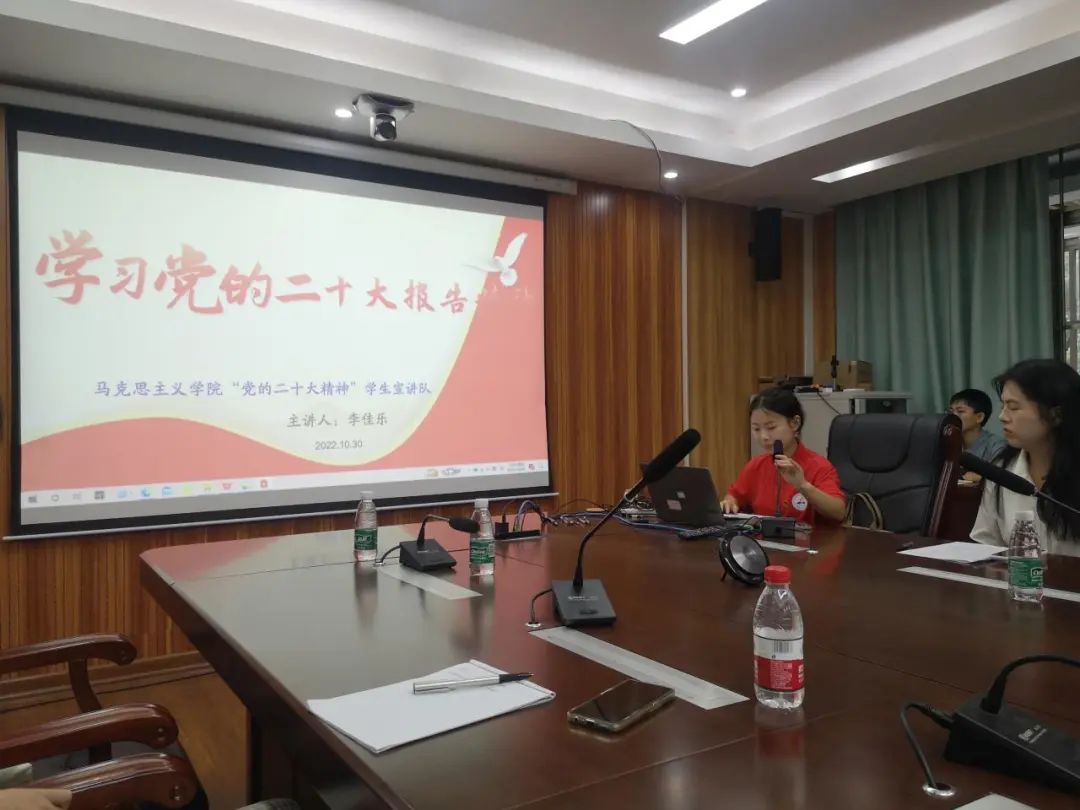 10月30日,受数信学院党委本科生一支部邀请,2138CC太阳集团“党的二十大精神”学生宣讲队走进党支部,面向学生党员开展了首场“党的二十大精神”宣讲活动。队员刘庆庆、李佳乐、龙紫璐参加了本场活动。