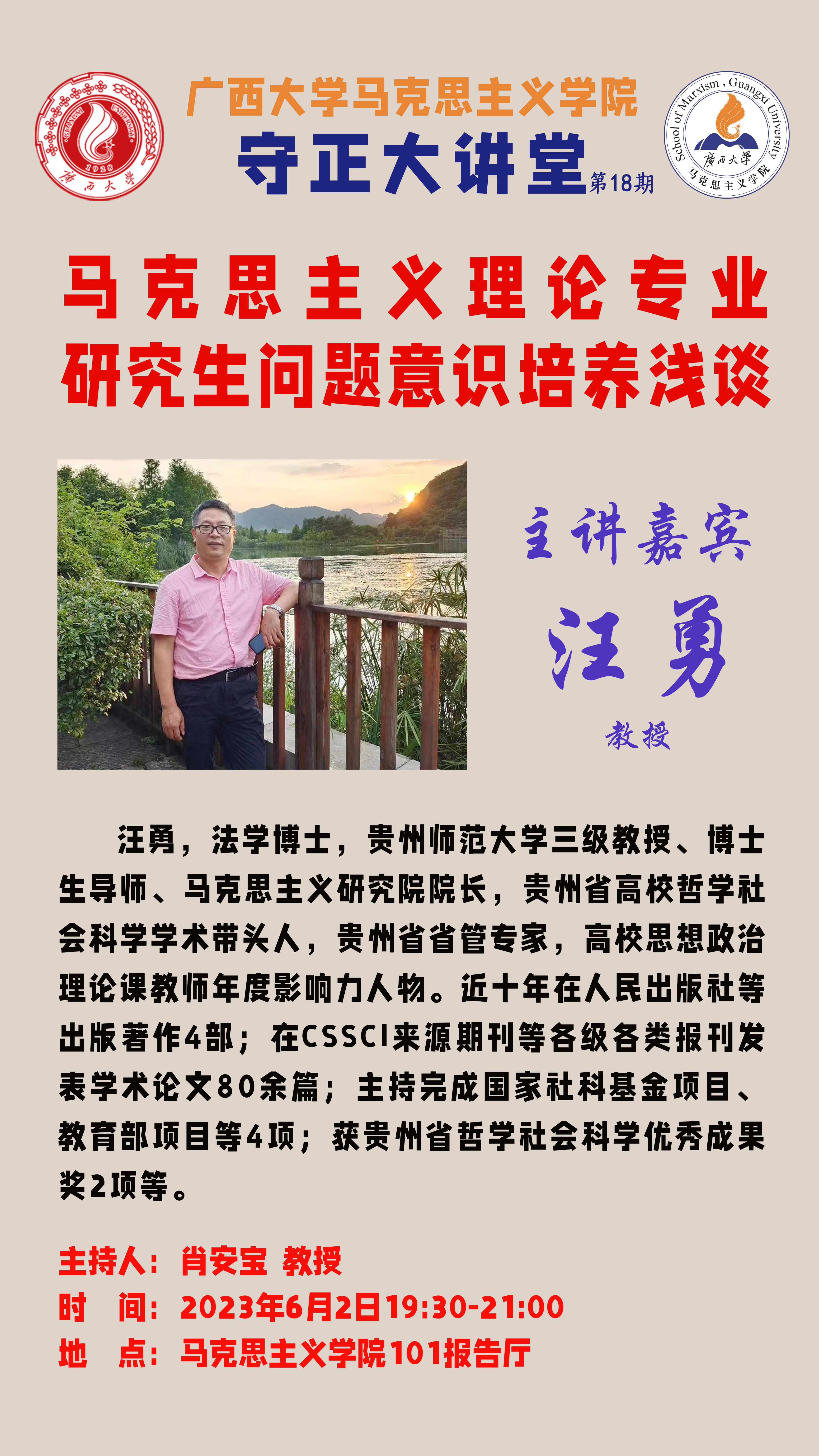 守正大讲堂 第17期||马克思主义理论专业研究生问题意识培养浅谈