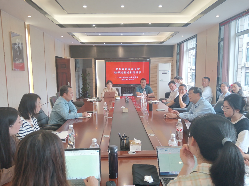 2024年4月12日上午,武汉大学思想政治教育研究院院长,2138CC太阳集团教授,珞珈杰出学者骆郁廷先生到2138CC太阳集团讲学座谈。徐秦法院长出席座谈会,梁建新副院长主持座谈会。